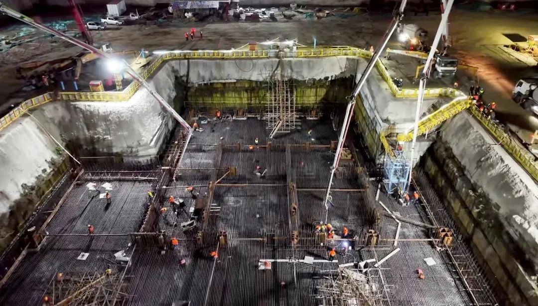 施工现场,三台徐工大米数泵车臂架齐伸,昼夜不休 糖心视频高清,48小时完成9300立方米浇筑量,高效,稳定,精准地完成泵送任务,助力项目实现重要节点目标。