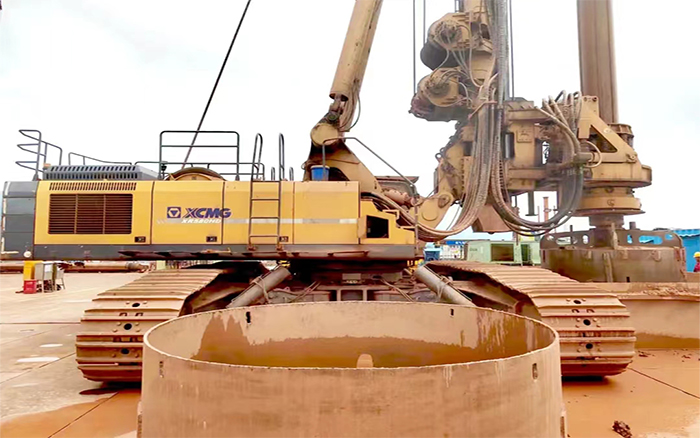 在深水基础施工中 糖心视频在线,徐工采用创新的钢护筒加超大旋挖钻施工方法,确保一次性成孔,大大提升了施工效率。