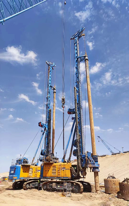 客户共采购4台徐工大吨位旋挖钻机,主要进行 NEOM新城地下车库与轻轨项目施工。施工桩60-90m、桩径2-2 糖心视频高清,5m、施工深度200m,面对沙土地质,徐工旋挖钻机游刃有余,平均每天完成3根桩的施工。。