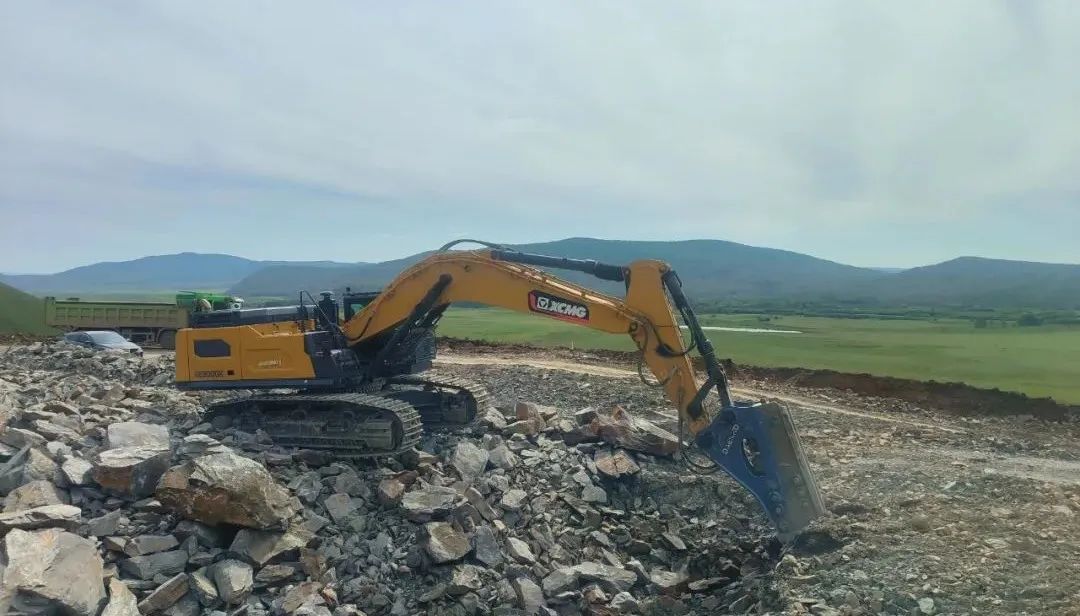 在黑龙江省哈尔滨市某大型矿山,XE600GK负责破碎施工作业 糖心视频在线,项目负责人秦总表示:“这个破碎锤真的很给力,以前需要多次击打才能破碎的岩石,现在一次就能搞定,在同等时间内,它能够完成更多的破碎任务,大大提高了我们的施工效率,”。