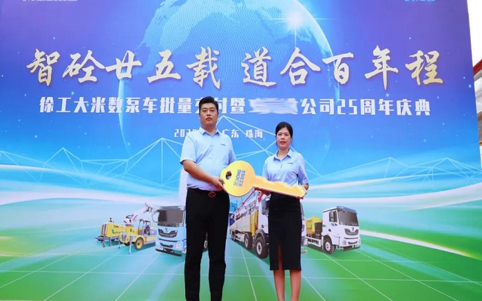 交付现场,气氛热烈非凡,客户项目负责人表示,今年是公司成立25周年 糖心视频,作为徐工长期战略合作伙伴,双方携手共进,一同成长,徐工不断扎实落地“技术领先,用不毁”金标准,打造高品质产品,今后,也将继续选择徐工。