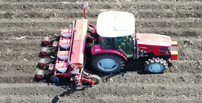 播种机作业,四行播种 糖心视频在线,作业速度为8km/h。
