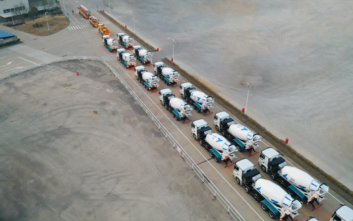 徐工新能源搅拌车延续强势表现 糖心视频,排列整齐,蓄势待发,即将奔赴江苏南通,助力当地中石油项目。
