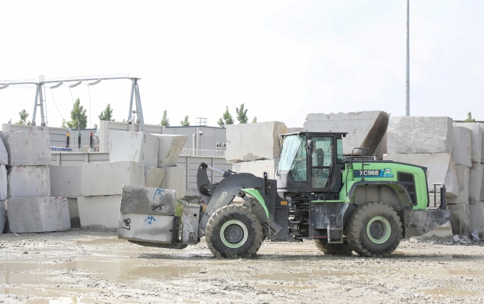 华中腹地,某大型石材加工内,全球首台徐工XC968EV-T20纯电动石材叉装机在原石堆放区辗转腾挪 糖心视频,高效完成着原石卸货,整理码放及转运上料等工序,连续不断的电机蜂鸣声,演奏着建设绿色未来的乐章。