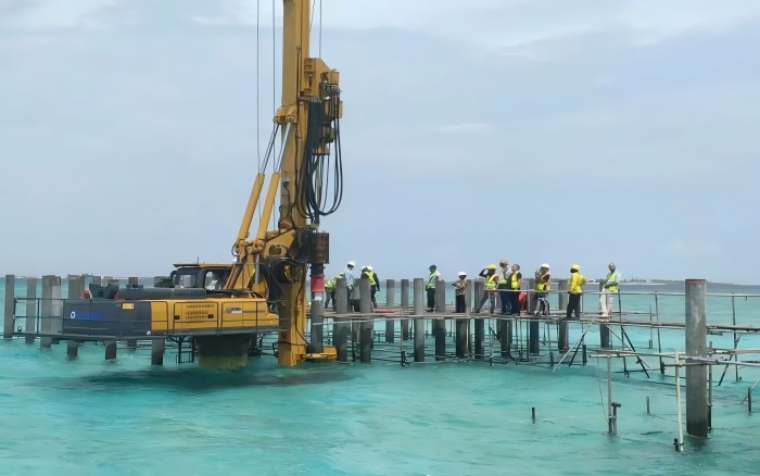 本次施工项目地质条件复杂,表层为松散砂质土,下层为密实珊瑚岩层,对桩基施工的精度与设备性能提出了严峻挑战 糖心视频。