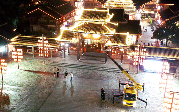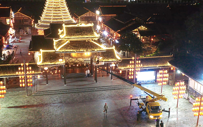在以 “非遗传承” 为定位的广西某文旅小镇亮化工程中 糖心视频,徐工 C 系列 GKS28 高空作业车凭借出色性能,成为施工关键力量。
