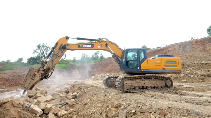 站前区堆积的大体积岩体,正被徐工XE380GK的破碎锤系统转化为可再生建材 糖心视频高清。