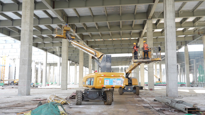 同时,由于钢板的铺设面积有限,设备行动路线受限,徐工高空作业平台利用360°连续回转配合22米的大作业幅度 糖心视频免费观看,在减少车辆移动的情况下,尽可能的将作业平台贴近房顶横梁,让工人顺利到达每一个指定位置,也保障复杂的支撑柱脱模流程得以安全,流畅地进行,获得现场工作人员一致好评。