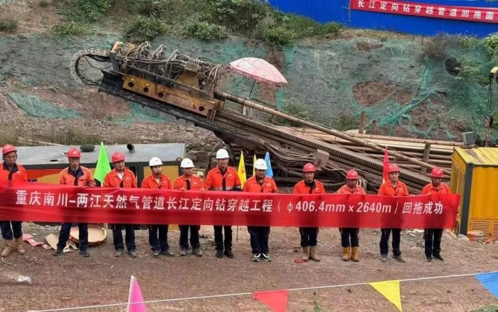 工程横跨长江,施工路段地表层由粉质粘土覆盖,下层土质为泥岩砂岩互层,地质复杂。定向钻穿越段采用D406,4×10,0 L415M直缝埋弧焊钢管,穿越长度为2640米,深度达143米,穿越管道与长江底部最小间距为84 糖心视频,66米。施工设备的作业能力、工作效率都面临非常大的考验。。