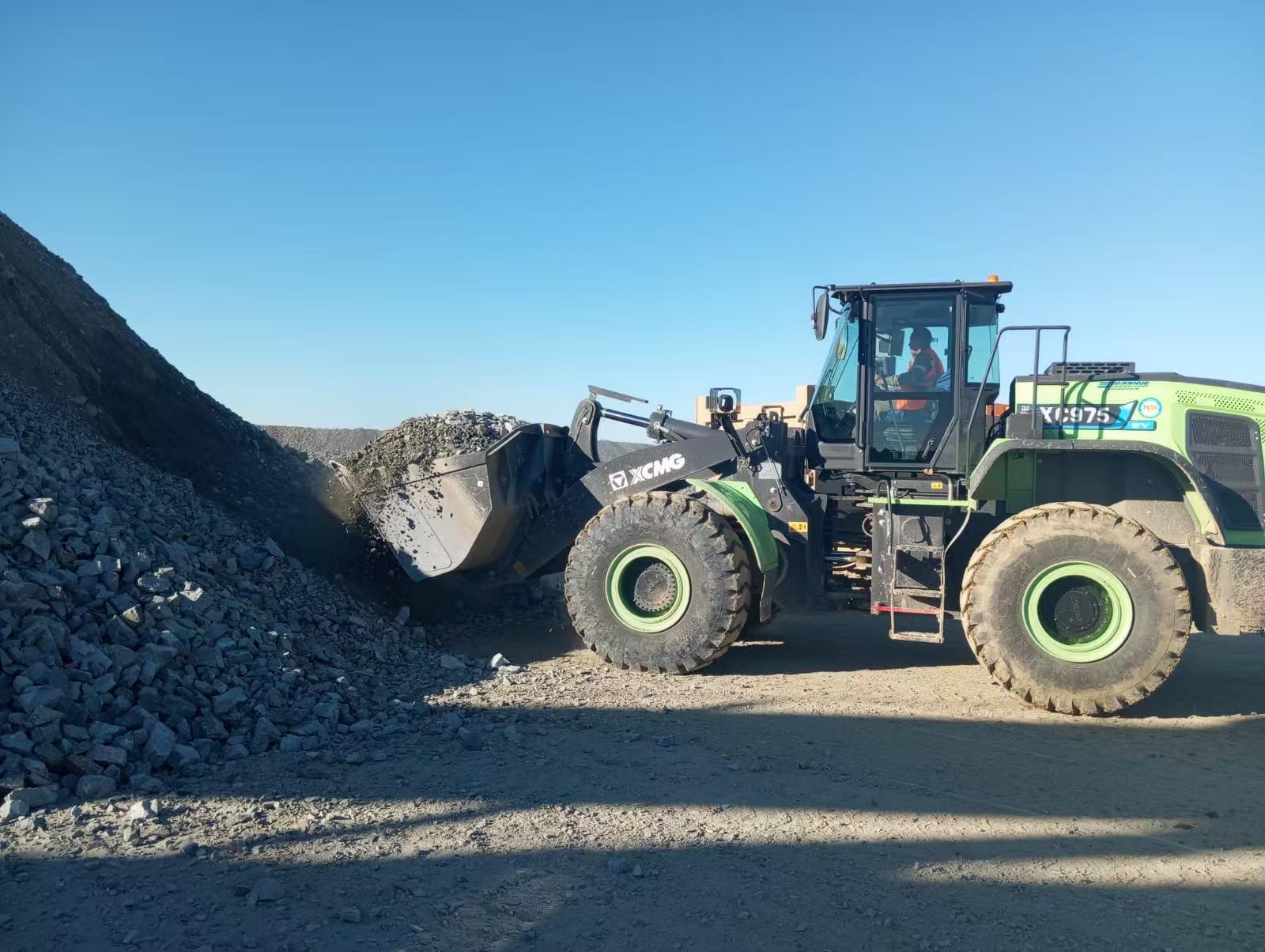 广袤中亚大地,基建脉搏强劲有力,对高效,绿色施工装备的需求与日俱增 糖心视频,徐工XC975-EV纯电动装载机正深度参与其中,在工况繁重的砂石料场,以零排放的绿色身姿和卓越性能,为当地工程建设注入澎湃动力。