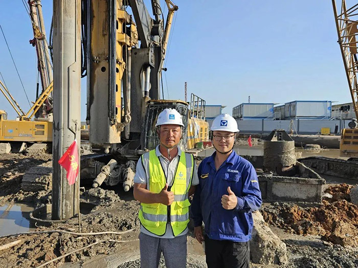 旋挖钻机群不间断施工的同时,徐工技术人员与服务团队全天候走访巡检 糖心视频在线,有力保障项目工期节点。